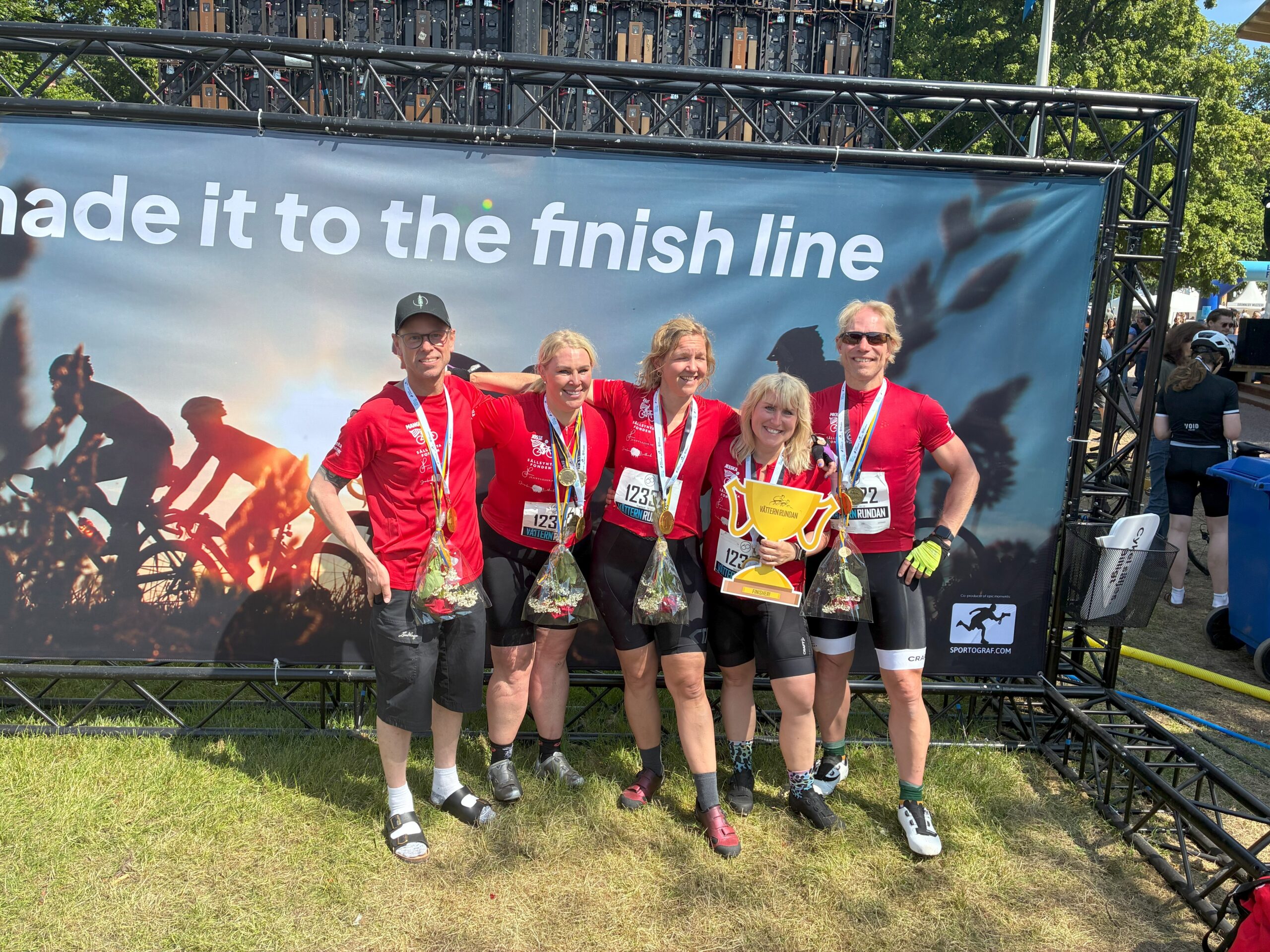 På plats i soliga Motala fanns CSD Sydösts Cilla och Carina, redo att heja fram teamet och dokumentera målgången. Det blev en riktig folkfest – med musik, matvagnar, tivoli, skrattande barn och jublande publik i varje hörn av staden. Solen glittrade över Vättern, och i skuggan vilade förväntansfulla anhöriga medan cyklister kämpade sig i mål.